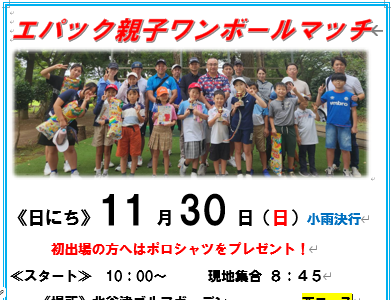 11/30(日)親子ワンボールマッチ開催のお知らせ